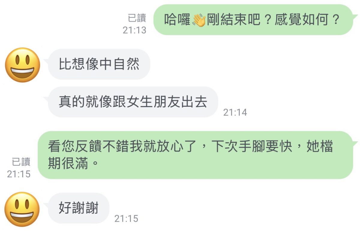 - 能夠在短時間內擁有一段像戀愛般的陪伴